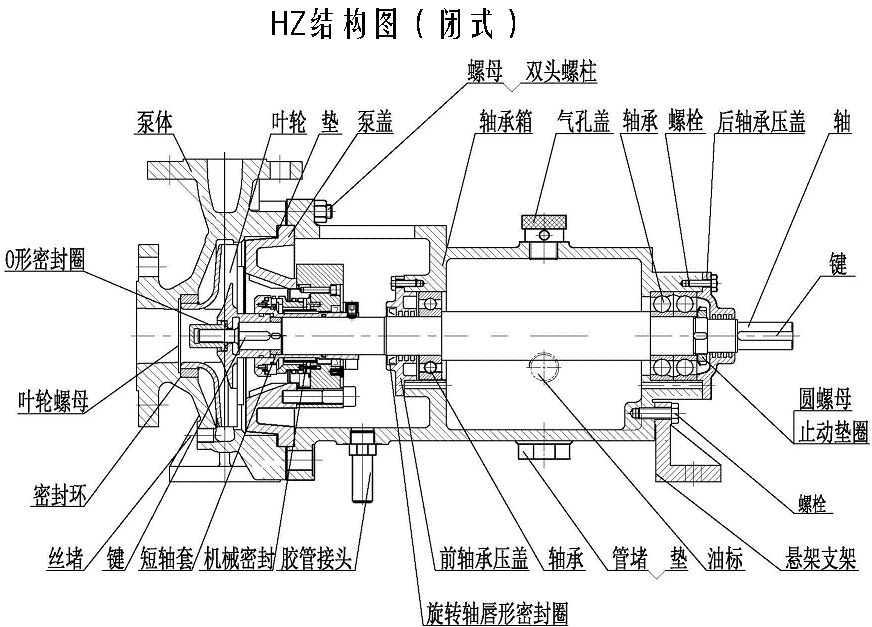 HZ型(閉式葉輪)和HZQ(前開式葉輪)化工流程泵是在總結(jié)F1、IH、CZ、ZBG等化工流程泵優(yōu)缺點(diǎn)的基礎(chǔ)上,吸收國內(nèi)外先進(jìn)的泵技術(shù),全新開發(fā)設(shè)計(jì)的單級單吸懸臂式離心泵。該泵具有性能優(yōu)良,抗汽蝕性能好,承載能力強(qiáng),機(jī)封和軸承壽命長,運(yùn)行可靠,結(jié)構(gòu)新穎,檢修方便等特點(diǎn)。